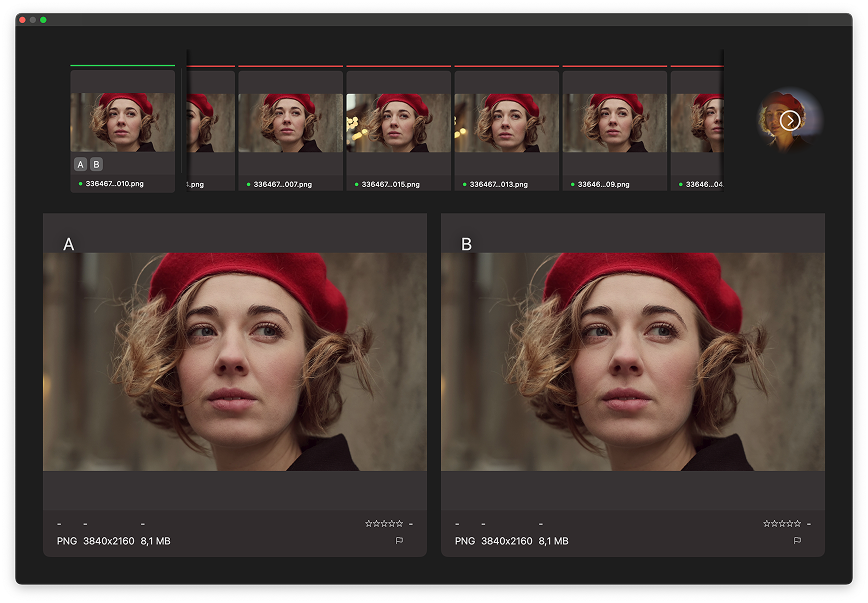 Le mode comparaison permet une validation précise avant toute sélection finale.